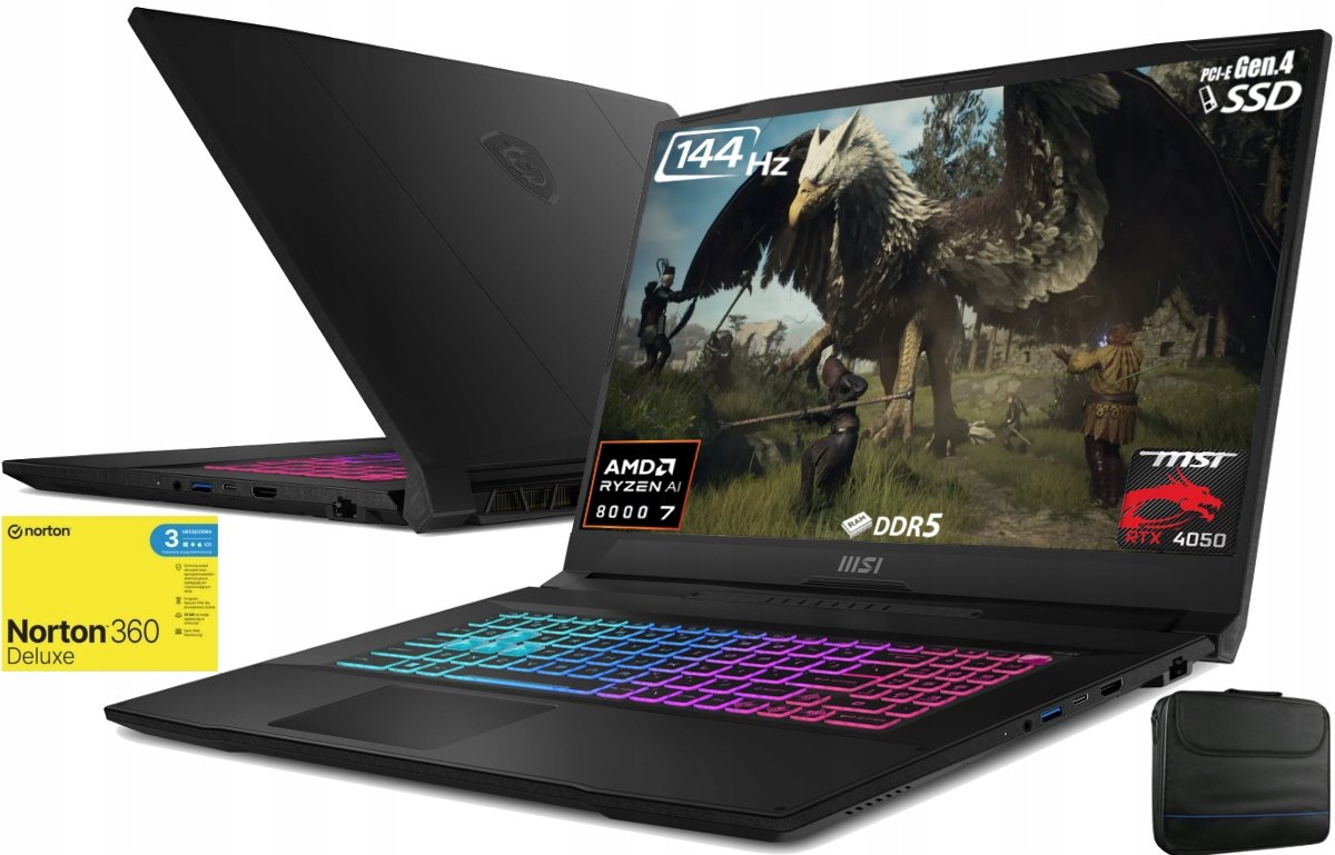 Kupując notebooka w tej ofercie w prezencie otrzymasz praktyczną TORBĘ NA LAPTOPA 17,3'' oraz 3 miesięczną subskrypcję programu NORTON 360 DELUXE.