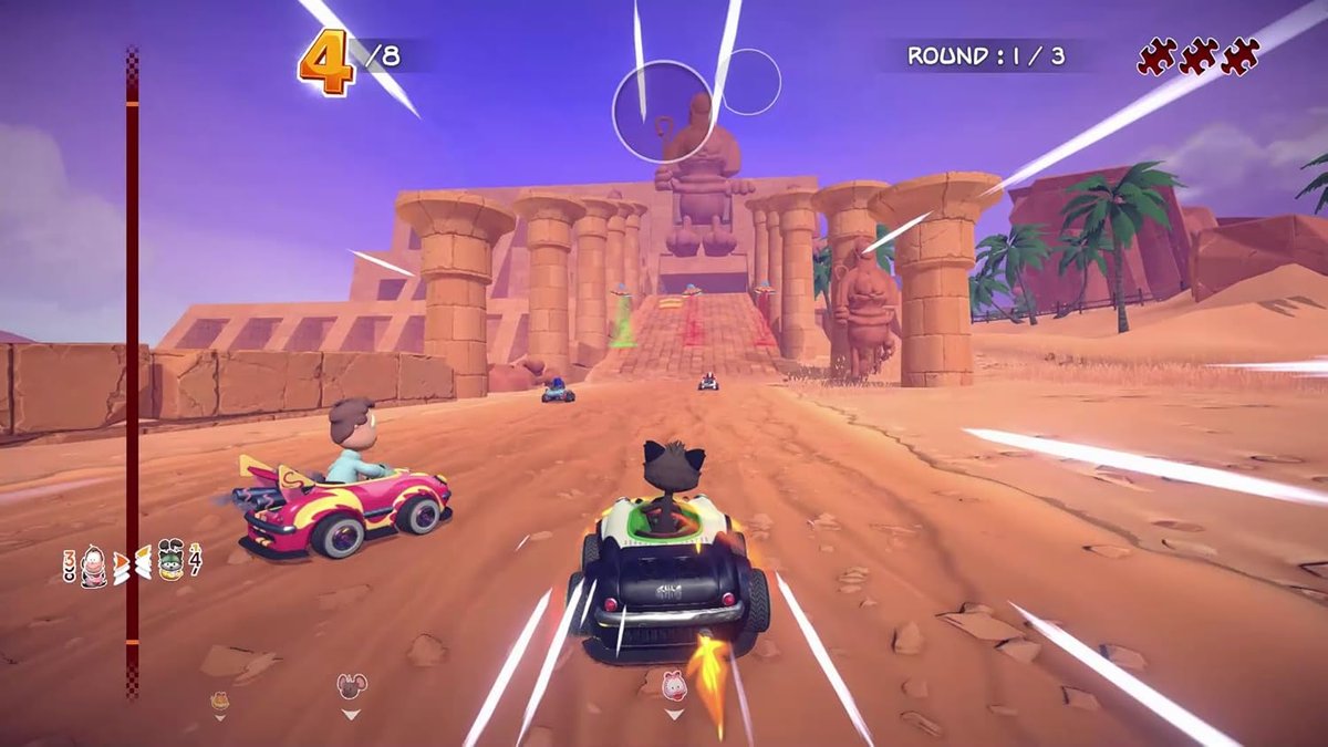 Wybierz swoją postać i swojego gokarta zależnie od właściwości i swojego stylu jazdy. Bądź najlepszy na starcie i panuj nad poślizgami i zakrętami, tak aby zyskać na czasie i prześcignąć swoich przeciwników. Wykorzystaj zwariowane przedmioty oferowane jako bonusy, jak np. poduszkę czy magiczną różdżkę, do przejęcia kontroli nad konkurentami i przekroczenia linii mety jako zwycięzca!