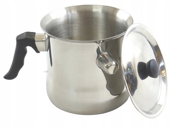 Garnek stalowy 1.0L do gotowania mleka z pokrywką i gwizdkiem.