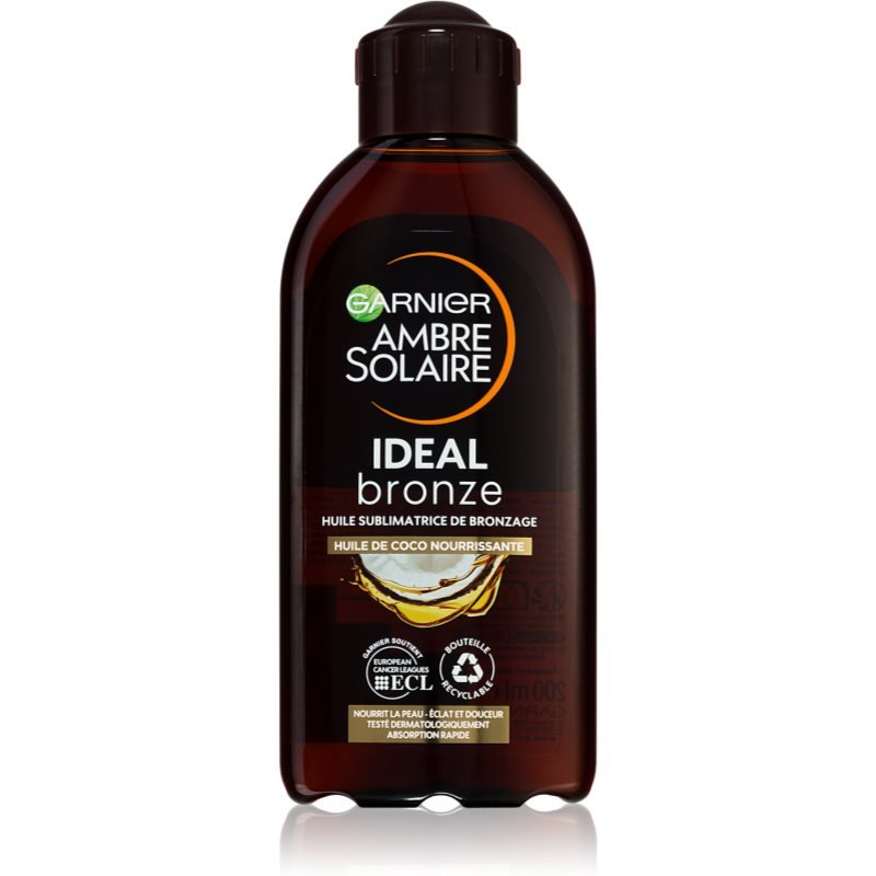 Garnier Ambre Solaire Ideal Bronze, 200 ml, Produkty przed opalaniem dla kobiet, Preparat Garnier Ambre Solaire zapewni jeszcze piękniejszą opaleniznę. Właściwości: wspomaga zdrową opaleniznę zapewnia skórze potrzebne nawilżenie Sposób użycia: Nanieś przed pobytem na słońcu i dokładnie rozsmaruj.