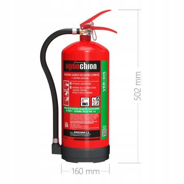 | Nazwa: | Gaśnica Urządzenie do gaszenia baterii Li-On VER-DIS 6x 6kg OGNIOCHRON |