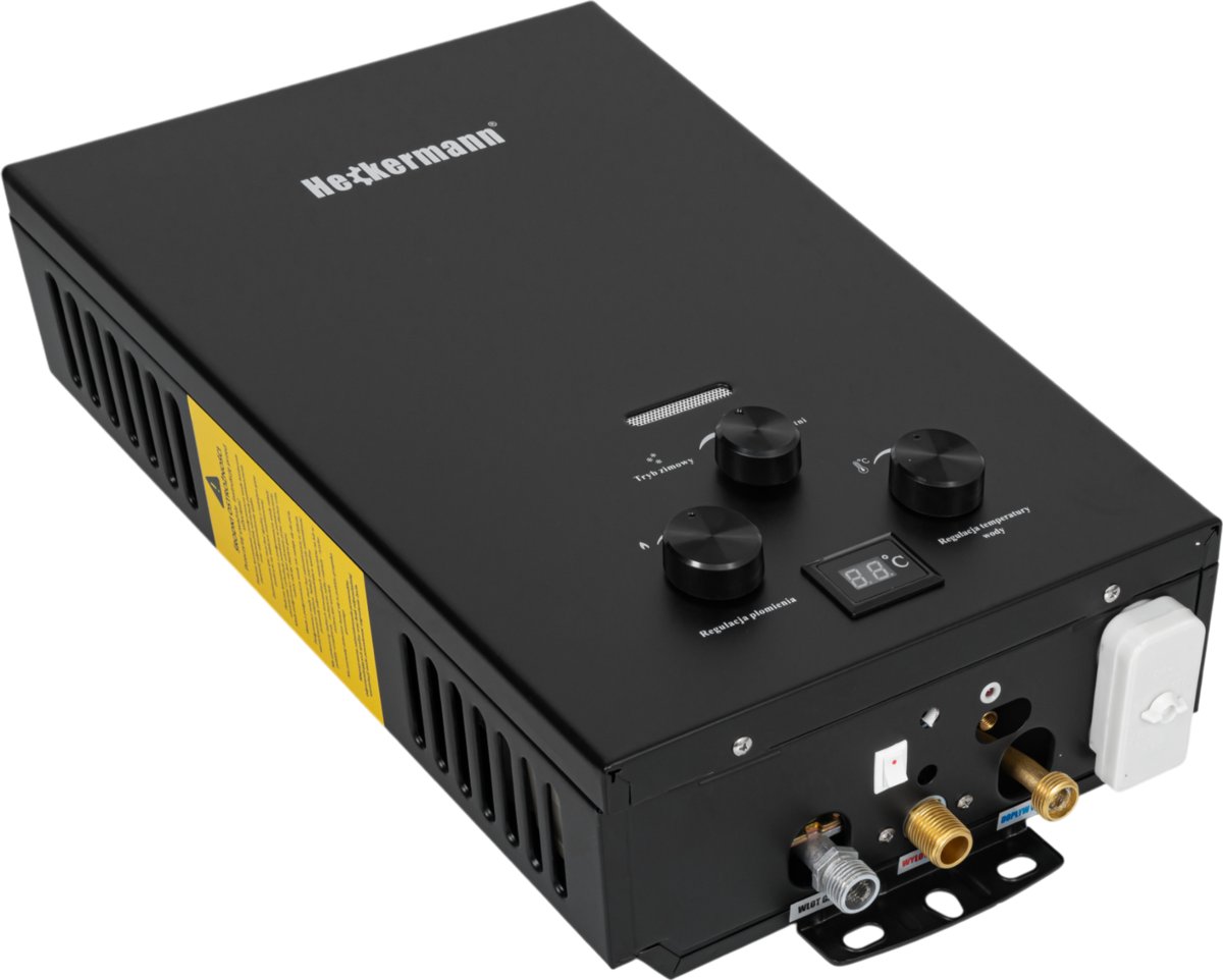 Heckermann JSD-HB04 to gazowy podgrzewacz wody, idealny do szybkiego i efektywnego podgrzewania wody - Wersja na Gaz Skroplony (LPG) - gaz z butli + Akcesoria do Model ten oferuje moc 24 kW, co czyni