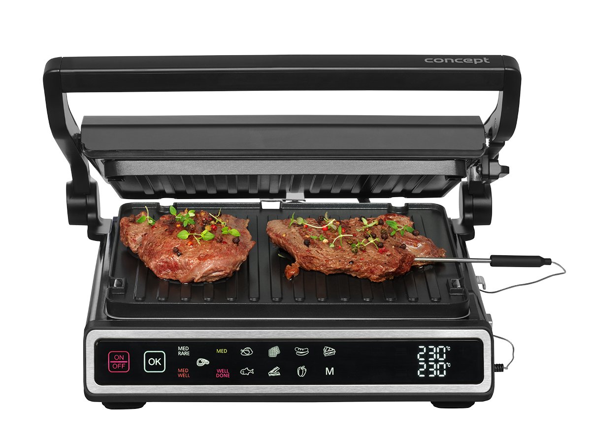 Nigdy nie będziesz zmuszony odwołać grilla z rodziną lub przyjaciółmi przez deszcz. Grill elektryczny nie wytwarza żadnego dymu ani zapachu, więc nie będziesz przeszkadzać swoim sąsiadom. W porównaniu z konwencjonalnymi grillami oferuje grillowanie z dwóch stron jenocześnie, dzięki któremu potrawy będą przygotowywane szybciej bez konieczności obracania. Grillowanie na grillu elektrycznym jest zdrowsze, ponieważ kontrola temperatury zapobiegnie spalaniu żywności.