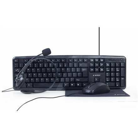 | Nazwa: | Gembird 4-in-1 Multimedia office set KBS-UO4-01 Keyboard, Mouse, Pad and Headset Set, Wired, Mouse included, US, Black |