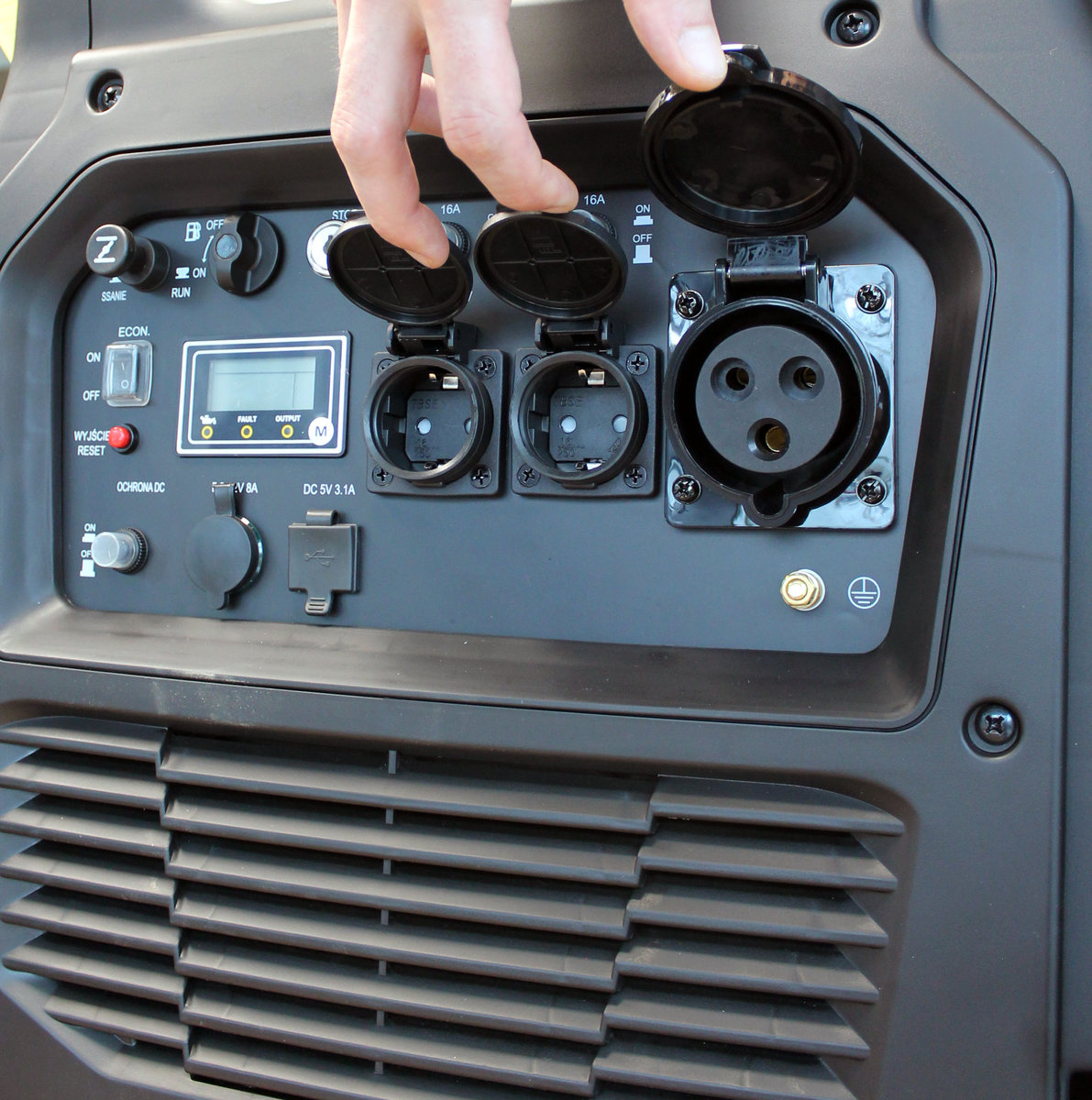 - wyświetlacz wielofunkcyjny (wyświetlacz napięcia 230 V i wyświetlacz częstotliwości, wyświetlacz godzin pracy oraz wszystkie niezbędne parametry podczas pracy urządzenia) dla zwiększenia komfortu użytkowania.