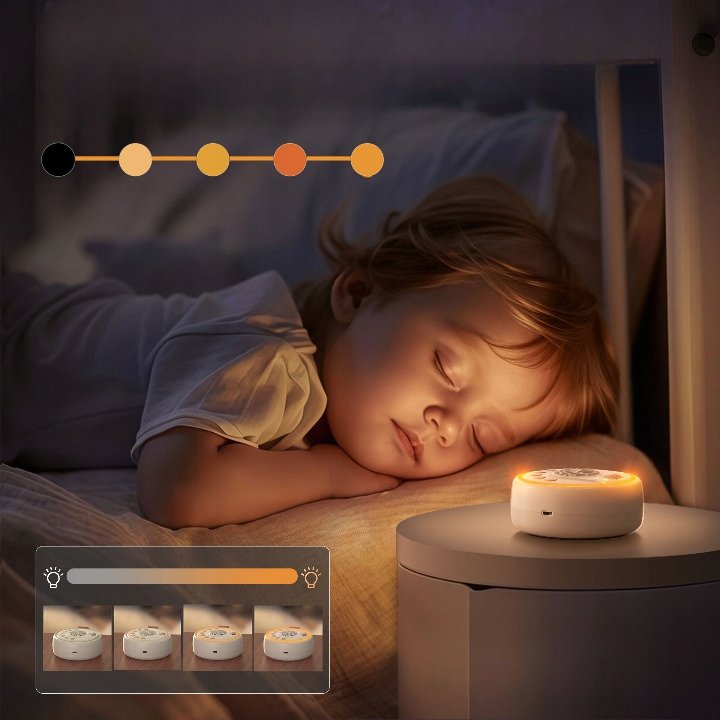 ✅ Przenośny i kompaktowy generator szumu z funkcją Bluetooth oraz lampką nocną pomoże Ci stworzyć spokojną, wyciszającą przestrzeń do snu i relaksu, zarówno w domu, jak i w podróży.