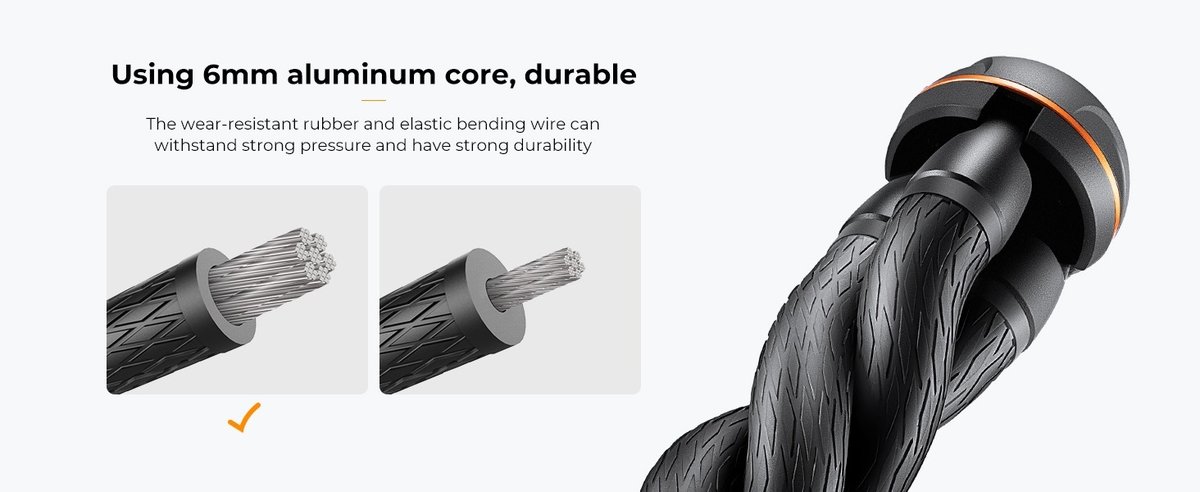 Wyjątkową cechą statywu są jego elastyczne nogi, umożliwiające dowolne zginanie oraz instalację statywu w przeróżnych miejscach!
