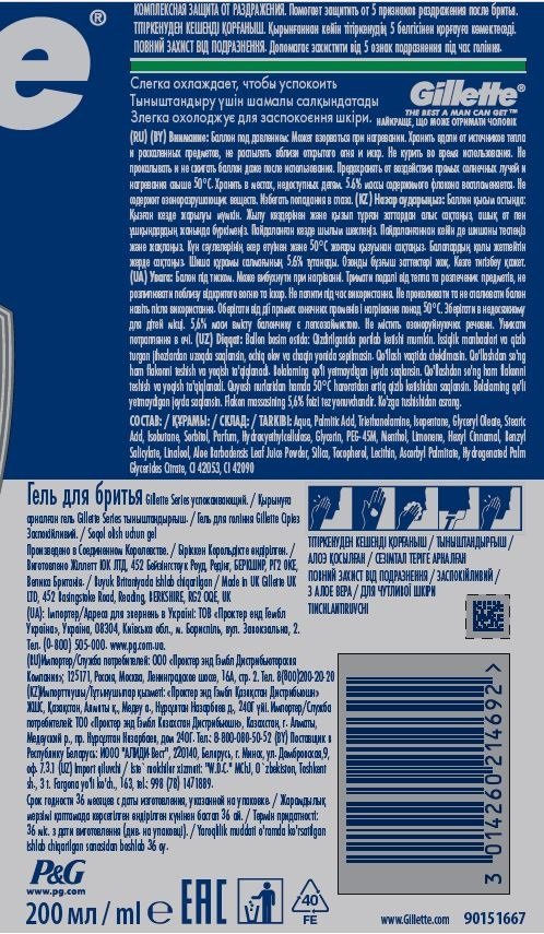 Poznaj niezwykłą gładkość golenia z żelem Gillette Series Sensitive. Formuła o potrójnym działaniu, z aloesem, zmiękcza zarost, nawilża i pomaga chronić skórę podczas golenia. Subtelny zapach orzeźwia i działa odświeżająco. Zawiera substancje nawilżające, które pomagają chronić skórę przed podrażnieniami podczas golenia.