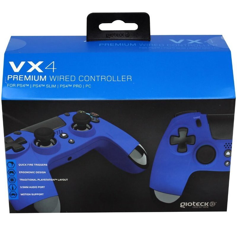 Gioteck Kontroler przewodowy VX4 do PS4 /PC w kolorze niebeskim Przewodowy kontroler klasy premium, kompatybilny z konsolą PS4, PS4 PRO i PS4 Slim oraz PC. Ergonomiczny kształt oraz optymalnie ...