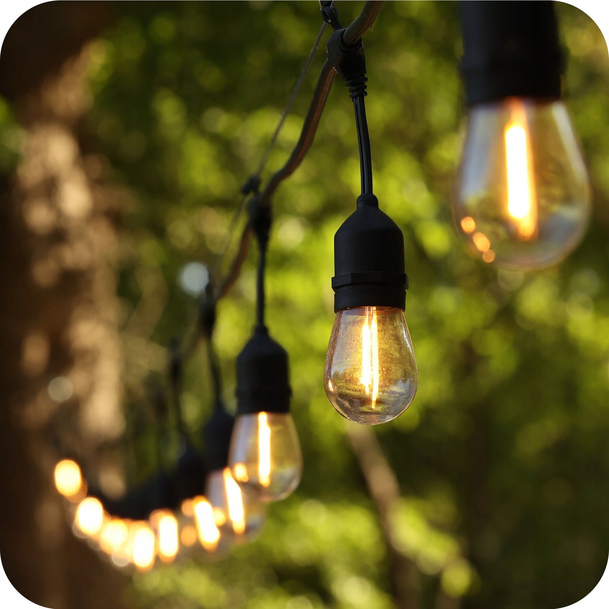 Girlanda ogrodowa, łańcuch o długości 10 metrów, wyposażona w oprawki pod żarówki E27 wraz z 20 dekoracyjnymi żarówkami LED filament o mocy 1W, tworzy wydajne i estetyczne źródło oświetlenia.