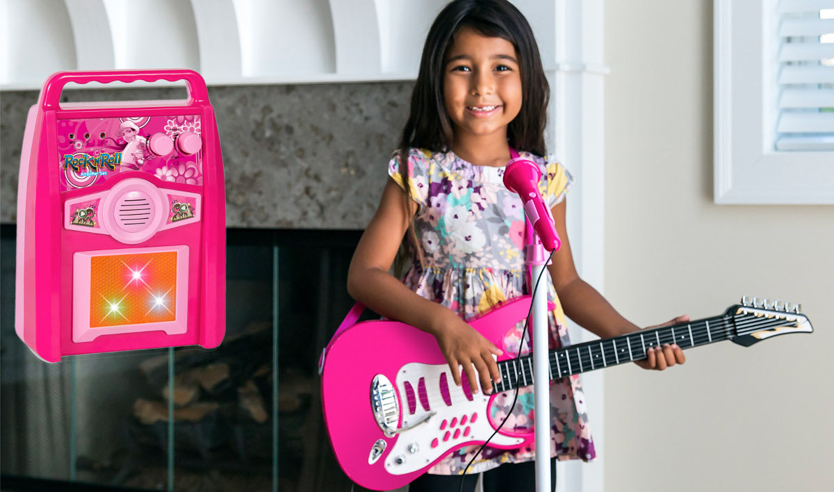 • Do zestawu gitary ze wzmacniaczem można również podłączyć własne mp3 z ulubionymi piosenkami wraz z wokalem – wówczas mały artysta będzie miał możliwość grania i śpiewania ze swoimi ukochanymi piosenkami w tle – to pomaga opanować tremę!