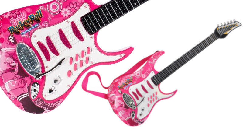 • Na gitarze elektrycznej dla dzieci można samodzielnie komponować melodie za pomocą opuszków palców lub specjalnej kostki (brak w zestawie). Można również skorzystać ze specjalnego przycisku z wgranymi melodiami, który posiada gitara z mikrofonem.