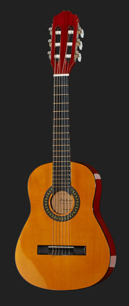 Rozmiar: 1/8 Pudło: Lipa Gryf: nato Podstrunnica: klon 19 progów Menzura: 465 mm Siodełko: 39 mm Struny nylonowe Długość całkowita: 76,2 cm Kolor: miodowy połysk