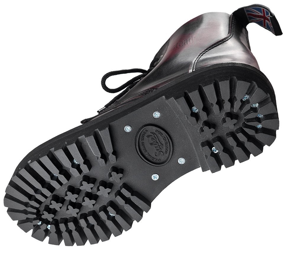 klasyczne glany wykonane z naturalnej skóry licowejczubki wzmacniane blachąpodeszwa typu "Lug" gumowa, skręcana śrubamiprzyszywane spodywyprodukowano w ...
