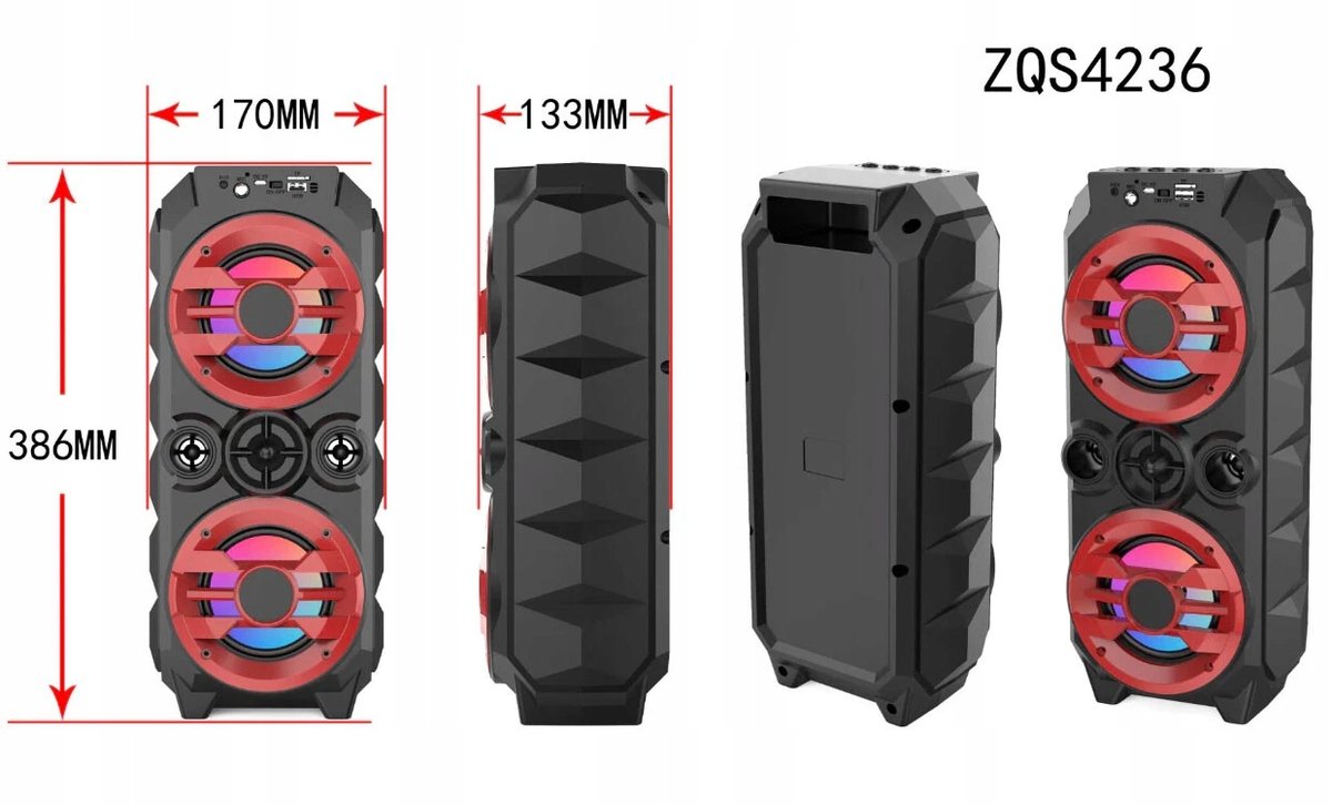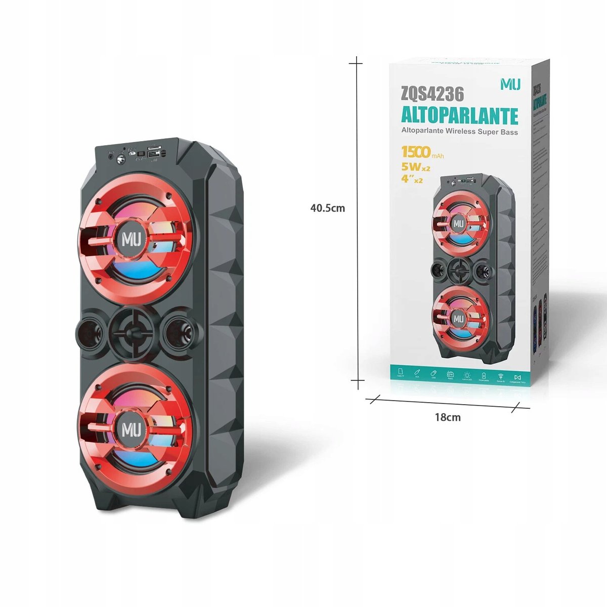 ✔️Wyposażony jest w baterię o pojemności 1500 mAh i dwa 4-calowe głośniki o mocy 5 W, które zapewniają mocne basy.