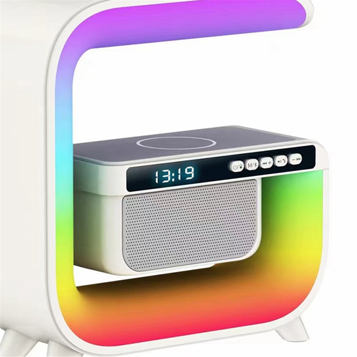 | Nazwa: | Głośnik Bluetooth z monitorem budzika, ładowaniem bezprzewodowym 15 W, kolorowym oświetleniem biurkowym |