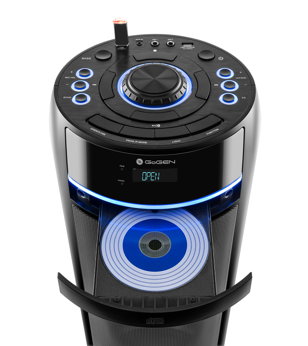Urodziny, firmowe imprezy, wieczory grillowania z przyjaciółmi, wigilijne przyjęcia, treningi w siłowni, występy taneczne, zawody sportowe... wszędzie tam nie może zabraknąć głośnika odtwarzacza Bluetooth z CD GoGEN BPS 736CD. Dzięki mocy dźwięku 90 W łatwo i skutecznie nagłośnisz zarówno mniejsze, jak i większe przestrzenie. Dodatkowo, dzięki dołączonemu mikrofonowi, możesz łączyć produkcję muzyczną z przemówieniami.