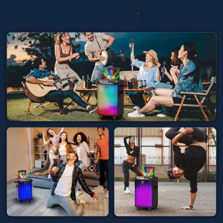 TONOR K20 to wszechstronny i przenośny zestaw karaoke, który wyróżnia się mocnym brzmieniem, trwałą konstrukcją i wyjątkowymi efektami wizualnymi. Dzięki wygodnej obsłudze, nowoczesnej łączności oraz bogatemu zestawowi akcesoriów stanowi idealny wybór dla osób szukających kompletnego rozwiązania do zabawy i wspólnego śpiewania – bez względu na miejsce i okazję.