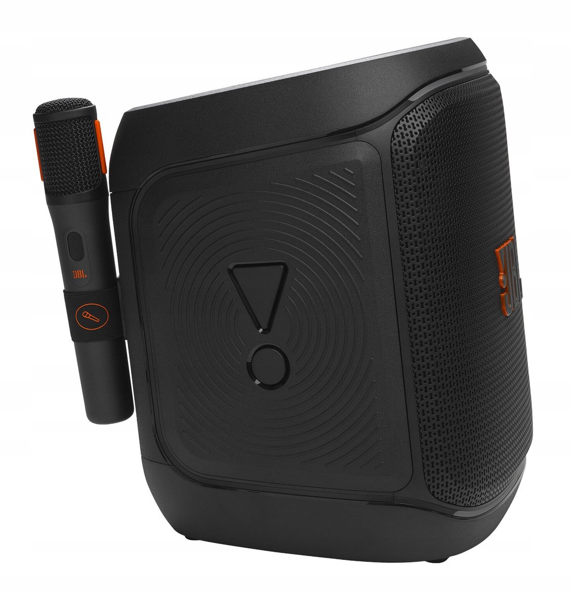 Zapewniający potężny dźwięk i dynamiczne efekty świetlne oraz nawet 15 godzin odtwarzania przenośny głośnik imprezowy z bezprzewodowym mikrofonem cyfrowym, wymienną baterią i elastycznym uchwytem.