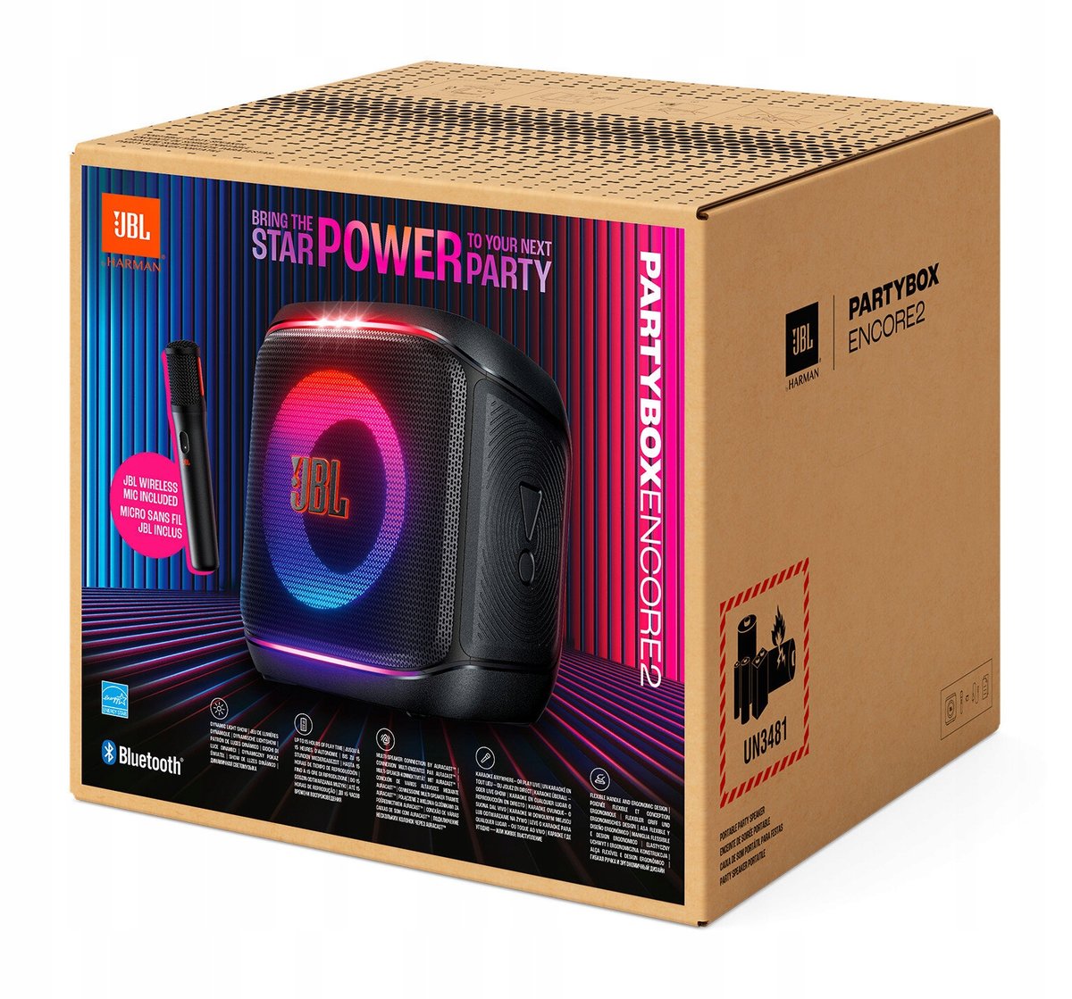 Głośnik JBL PartyBox Encore 2 zawiera plastik z recyklingu pokonsumenckiego. Produkt zapakowany w papier z certyfikatem FSC, z nadrukiem wykonanym atramentem sojowym.