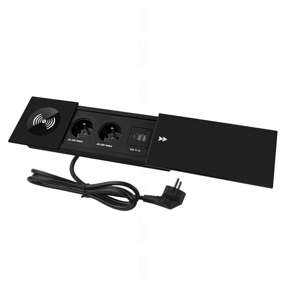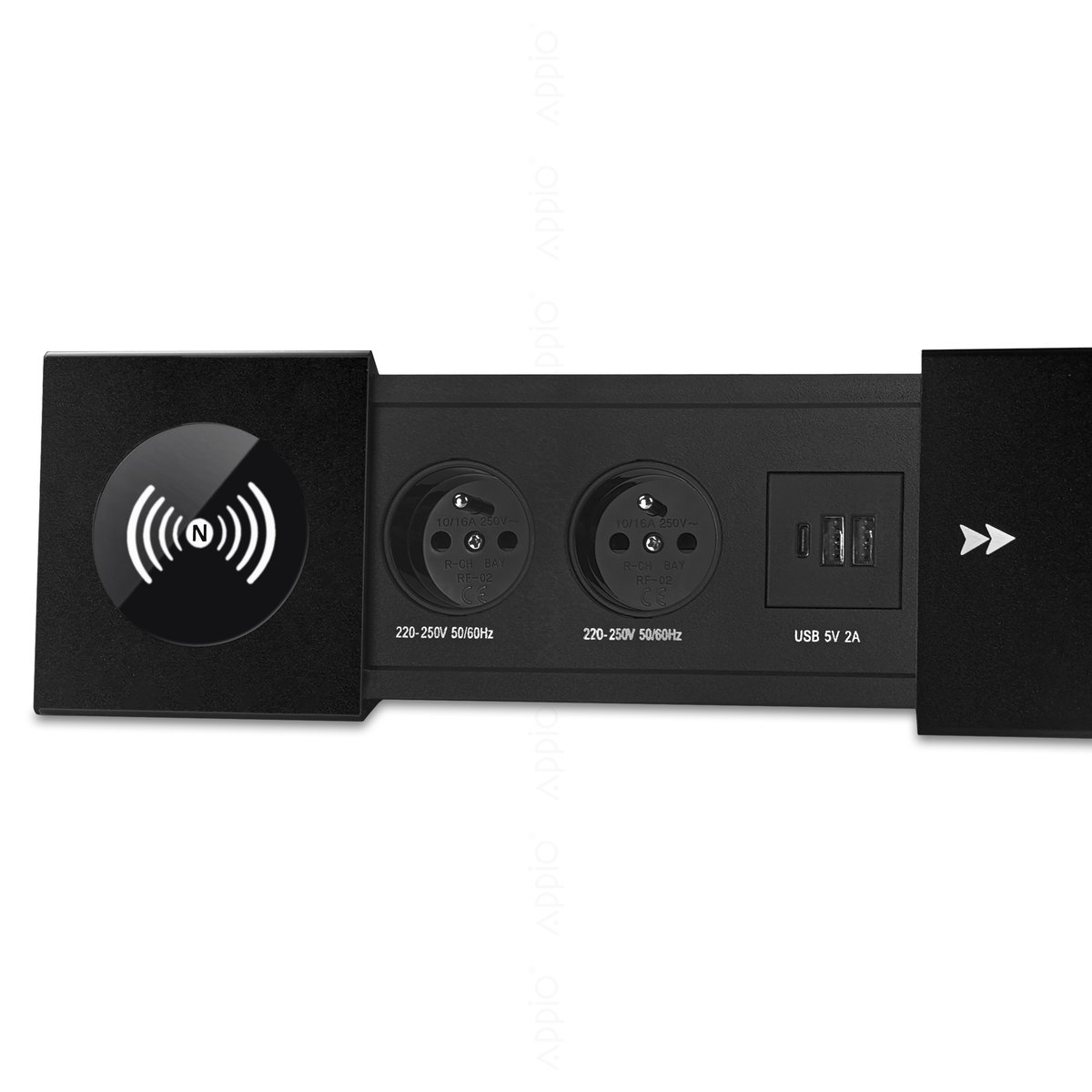 Gniazdo czarne wpuszczane w blat z uziemieniem, ładowarką indukcyjną QI oraz 2x USB 1x USB C