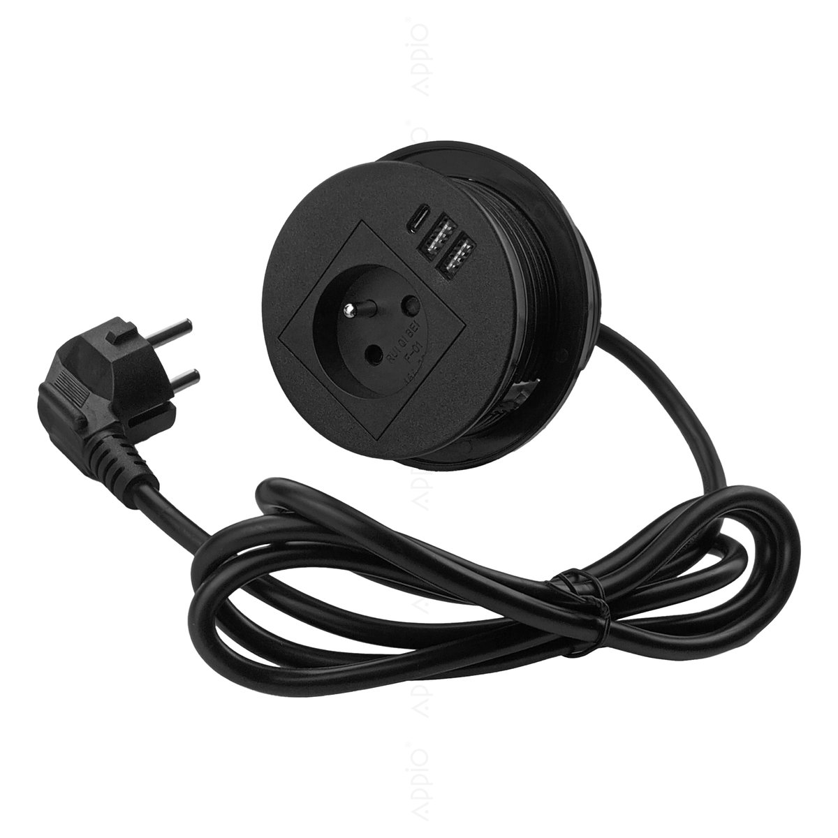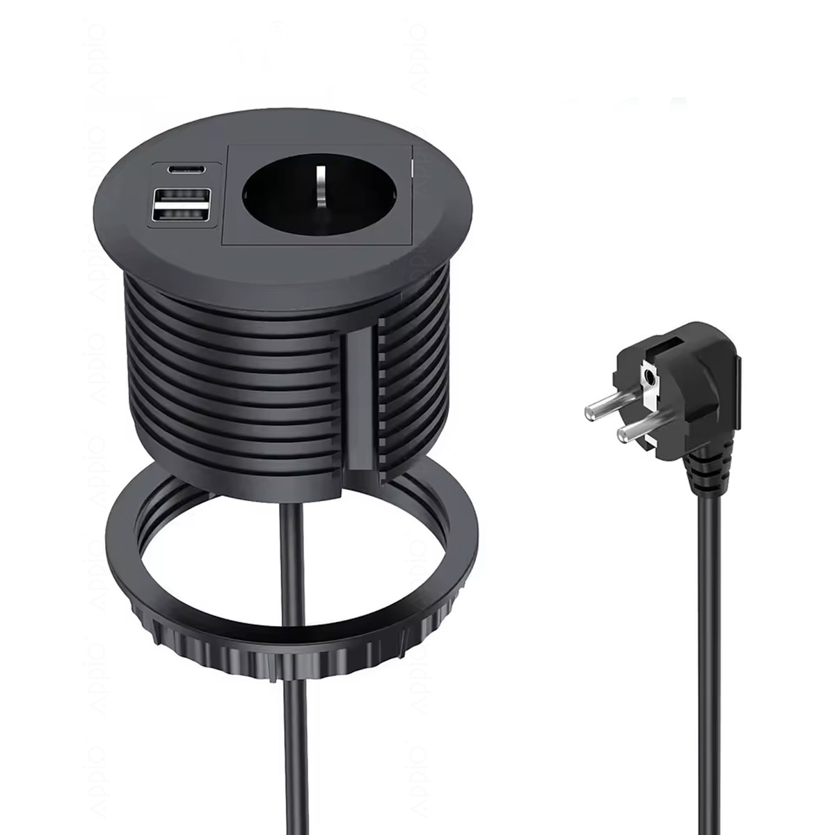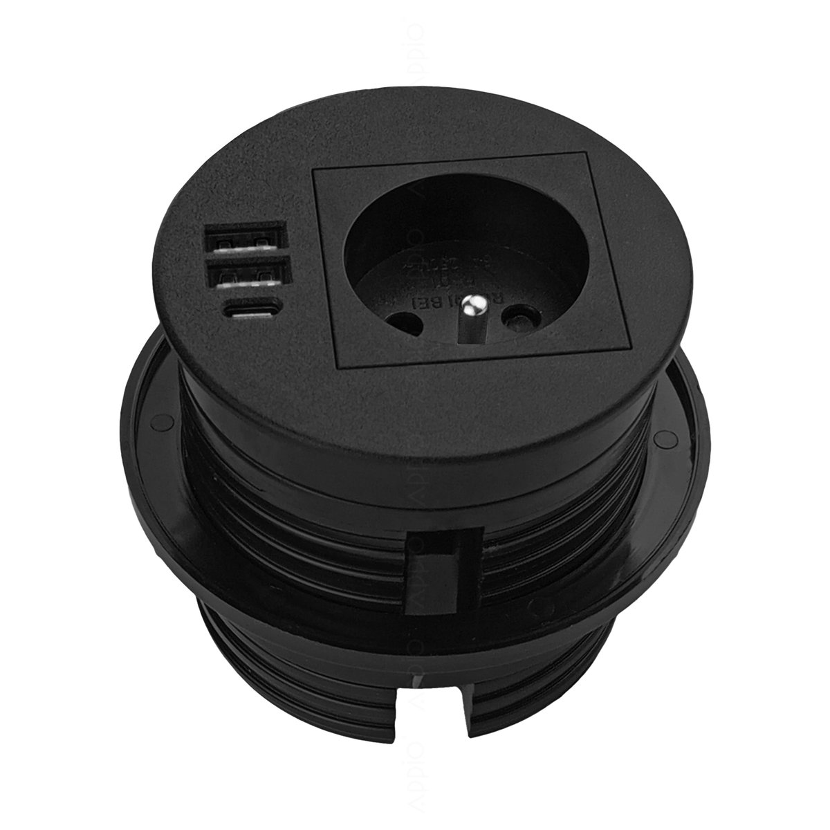 Gniazdo czarne wpuszczane w blat z uziemieniem i gniazdami 2x USB 1x USB C