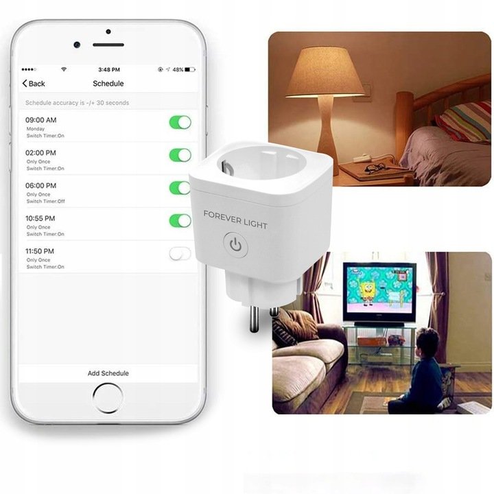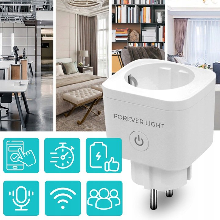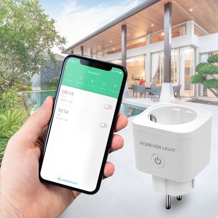 Inteligentne rozwiązania dla domu są w zasięgu Twojej sieci WiFiInteligentne gniazdko Forever Light łączy się z WiFi, dzięki temu możesz nim sterować i ustawiać tryby pracy przez aplikację w swoim telefonie. Gniazdko możesz skonfigurować w najpopularniejszych aplikacjach Tuya oraz Smart Life, gdzie nie tylko zaprogramujesz jego pracę, ale możesz ją zsynchronizować z innymi sprzętami smart. Sterowanie gniazdkiem może się tez odbywać za pomocą asystentów głosowych Alexa lub Google Assistant. |