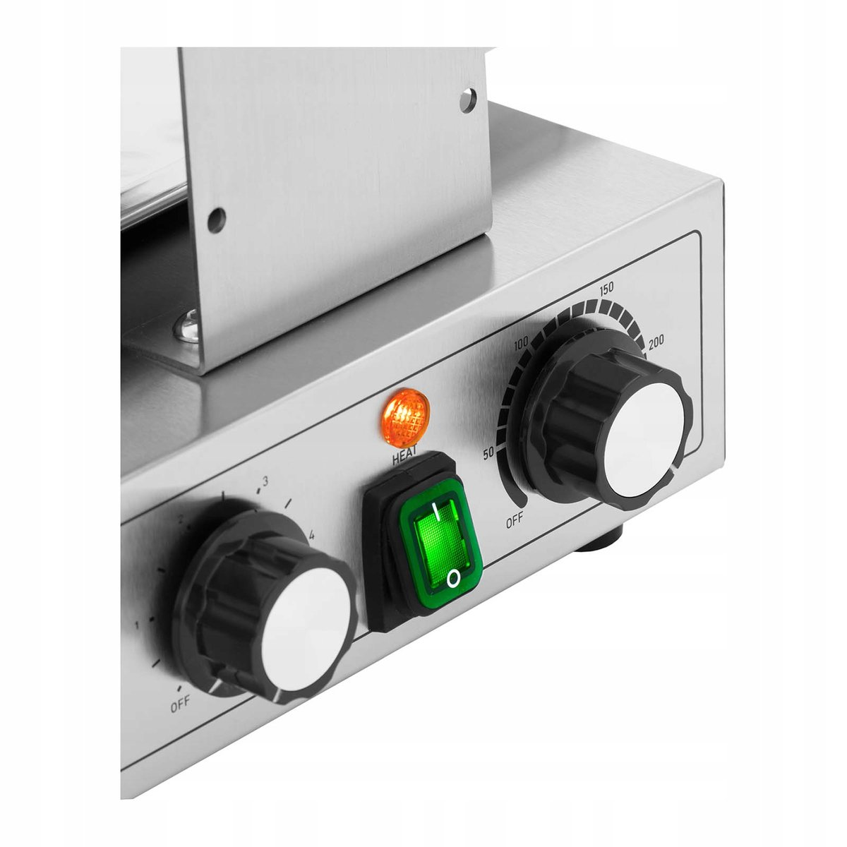 Gofrownica bąbelkowa marki Royal Catering pozwala na przygotowywanie delikatnych na zewnątrz, puszystych i miękkich w środku gofrów. Obudowa urządzenia wykonana została z wysokiej jakości stali nierdzewnej, płyty do pieczenia z aluminium pokrytego teflonem. Duża moc 2 x 1400 W umożliwia nagrzanie płyt do pieczenia bardzo szybko. Timer jest regulowany zakresie 0-5 min i posiada alarm. Temperatura regulowana jest między 50-250°C. Lampka kontrolna informuje o osiągnięciu wybranej temperatury.