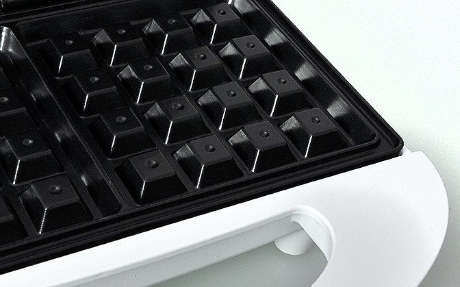 Gofrownica posiada dwie płyty grzejne, dzięki którym można zrobić dwa gofry jednocześnie. Dodatkowo wyposażona jest w powłokę antyadhezyjną, która zapobiega przywieraniu, przez co łatwo utrzymać nie tylko czystość urządzenia, ale również idealny wygląd gofrów.