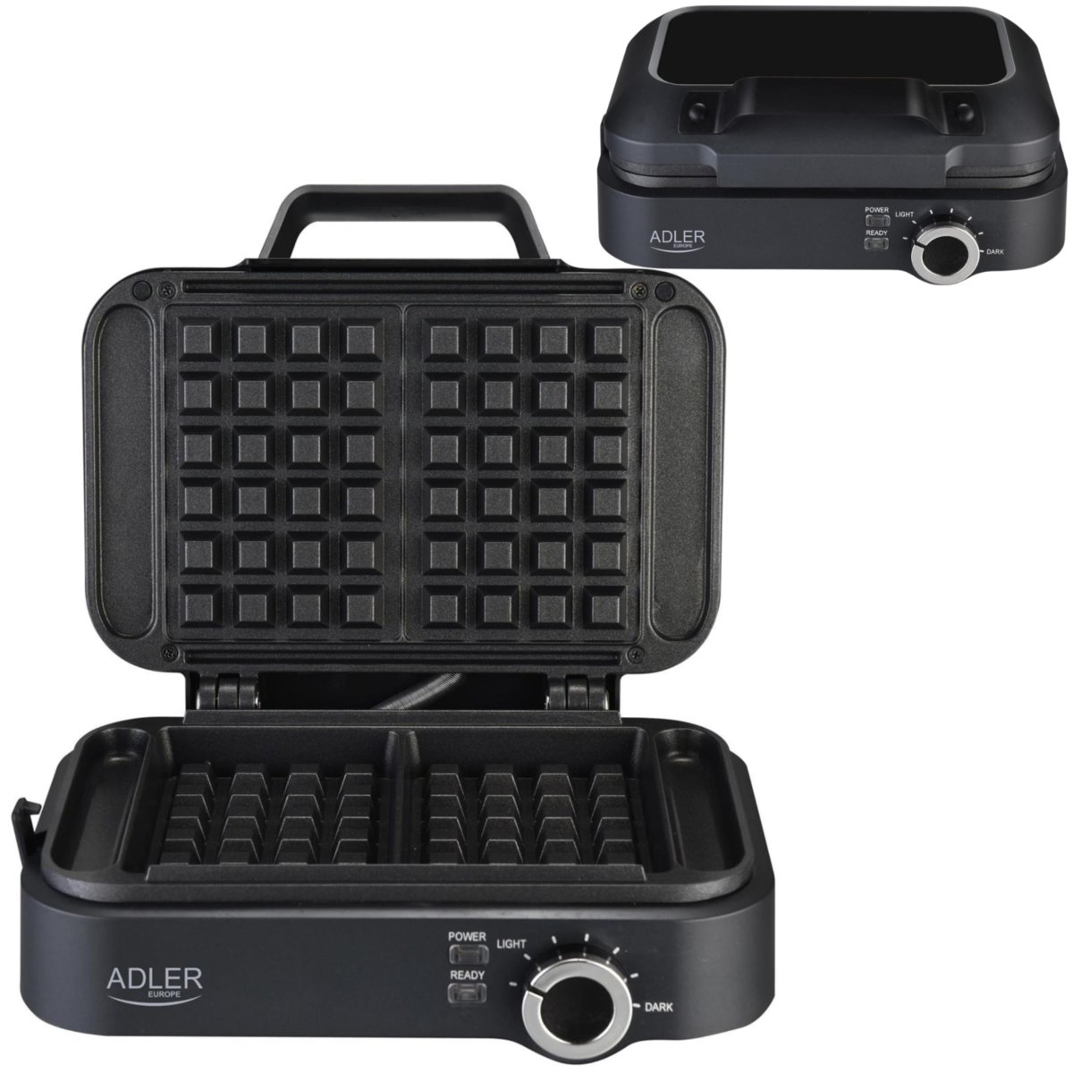 ❇️ Kompaktowa gofrownica Adler o dużej mocy 1600W z możliwością regulacji stopnia opiekania. Doskonała do przygotowywania chrupiących gofrów. Jednocześnie wypieka 2 duże gofry. Zaopatrzona jest w płyty grzewcze pokryte powłoką zabezpieczającą przed przywieraniem, ułatwiają wyjmowanie gotowego gofra i czyszczenie urządzenia. Wygodna także w transporcie, dzięki gotowości do przechowywania w pozycji pionowej.