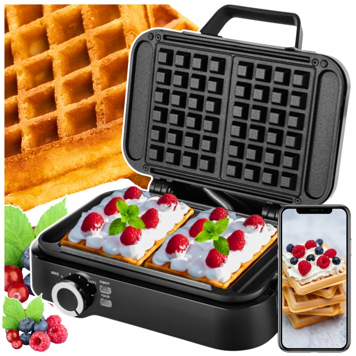 Właśnie zrecenzowałem GOFROWNICA OPIEKACZ DO GOFRÓW 2200W MOCNA Z REGULACJĄ TEMPERATURY CZARNA