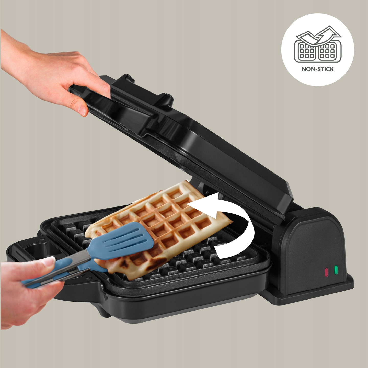 Urządzenie przygotowuje duże, pełnowymiarowe gofry, które doskonale sprawdzą się podczas rodzinnych śniadań, leniwych weekendów lub spotkań z przyjaciółmi.
