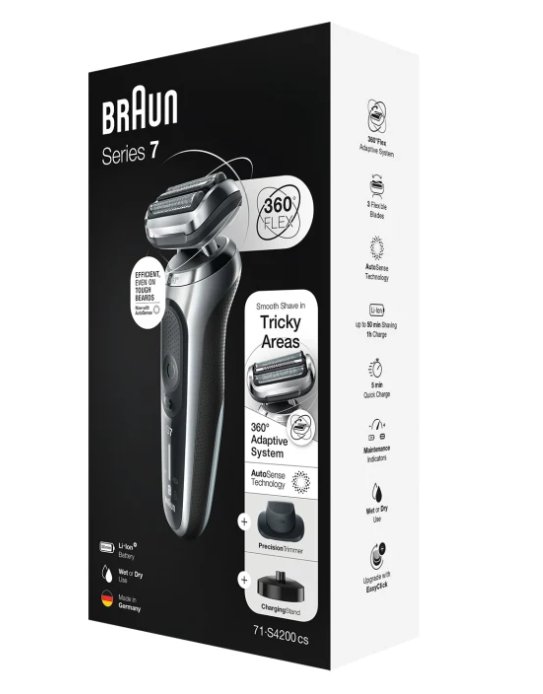 | Nazwa: | Golarka elektryczna BRAUN Series 7 71-S4200cs SILV |