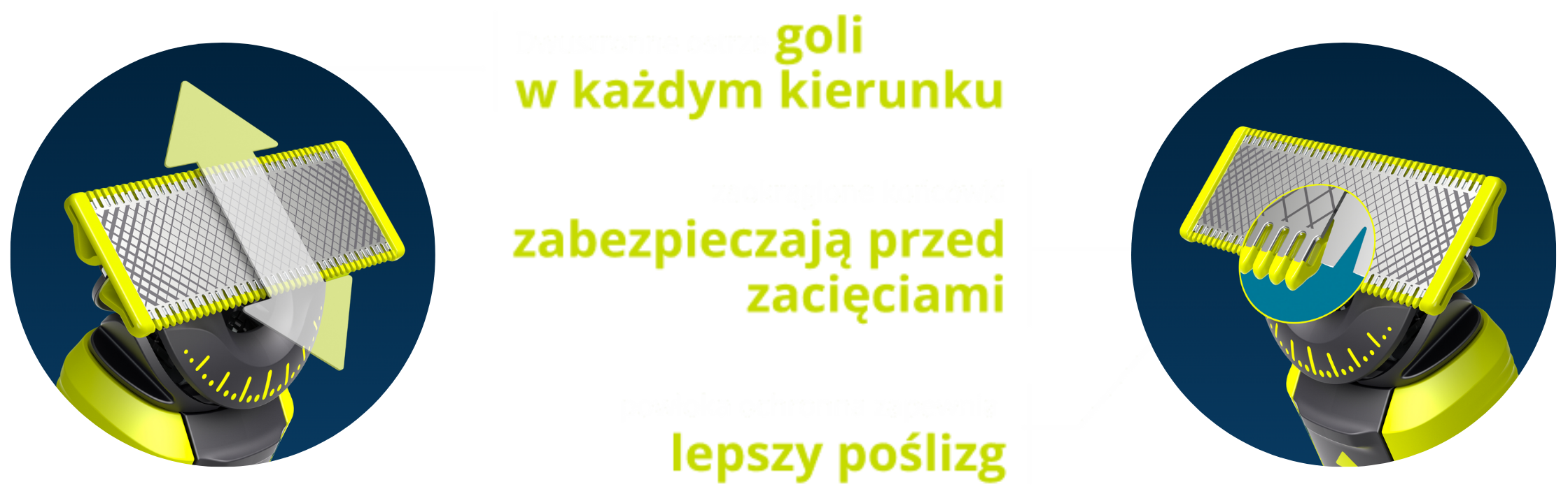 Doskonałe dopasowanie do kształtu twarzy, dzięki innowacyjnemu ostrzu OneBlade 360