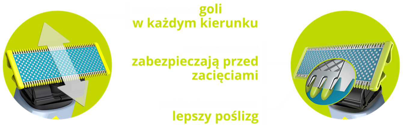 Ostrza OneBlade są gwarancją niezwykłej efektywności na długo - zachowują ostrość nawet do 4 miesięcy*. Kiedy wymagają wymiany jest ona bardzo prosta. O jej potrzebie poinformuje Cię wyświetlający się na ostrzu symbol strzałki pojawiający się na ostrzu.