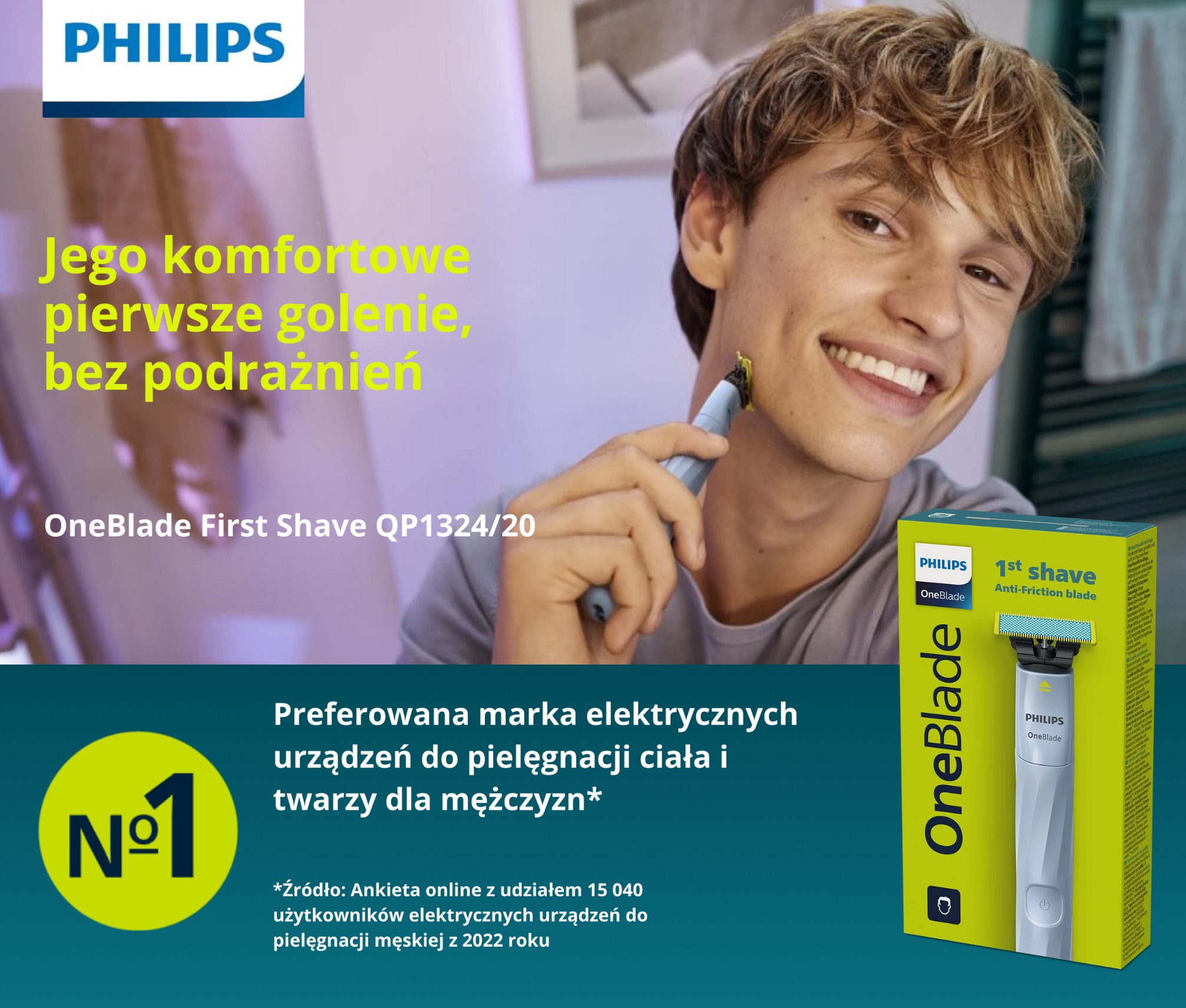 | Nazwa: | Golarka Philips OneBlade First Shave QP1324/20 Twarz na mokro i sucho |