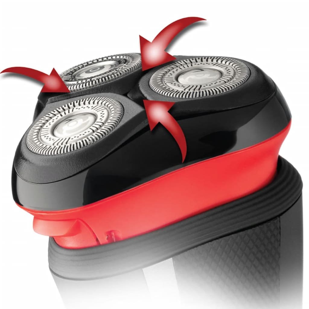 Głowice tej golarki są ruchome, co spowoduje jej dopasowanie się do kształtu twarzy. Dzięki temu usuwanie włosów będzie dokładniejsze, szybsze i bardziej komfortowe. Urządzenie posiadające ruchome głowice znacząco więc zwiększy zarówno efektywność, jak i wygodę golenia.