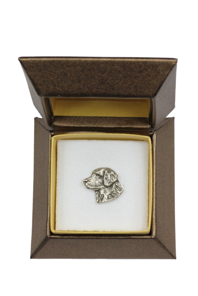 Golden Retriever I - broszka z psem w pudełku prezentowym, elegancki pin, wpinka do klapy marynarki marki Art-Dog Przedstawiamy wyjątkowy upominek dla każdego psiarza - elegancka, posrebrzana broszka