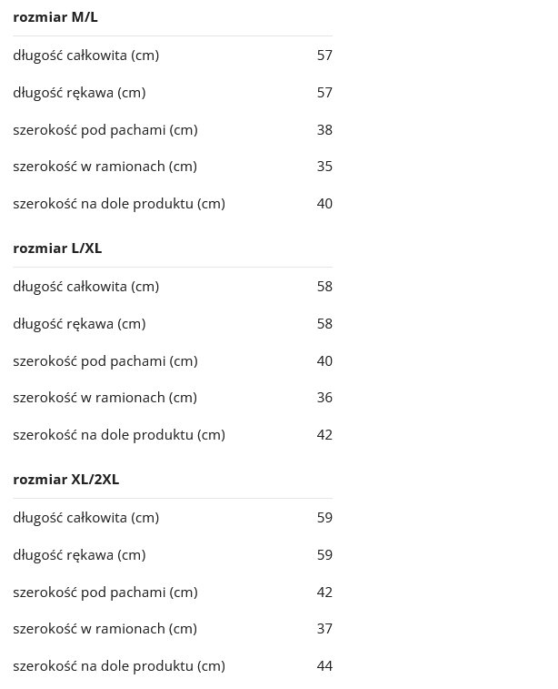 Rozmiar podany z metki: L/XL(Sprawdź wymiary w tabeli)