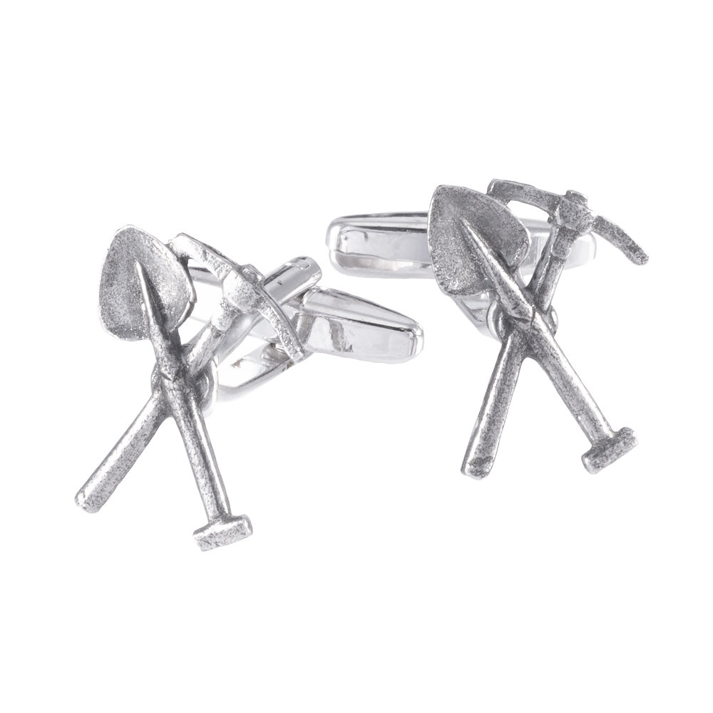 Prezentowany model spinek to wspaniały dodatek do stroju i upominek dla każdego mężczyzny związanego z zawodem górniczym, czy to dyrektora, inżyniera lub technika. Starannie wykonane w kształcie narzędzi górniczych – kilofa i łopaty – w kolorze ciemnego srebra, co naje im niezwykły, urokliwy efekt retro. Będą idealną ozdobą munduru górniczego lub każdej eleganckiej stylizacji mężczyzny pracującego w kopalni. Mogą być upominkiem z okazji Dnia Górnika, przejścia na emeryturę lub rocznicy pracy w firmie.