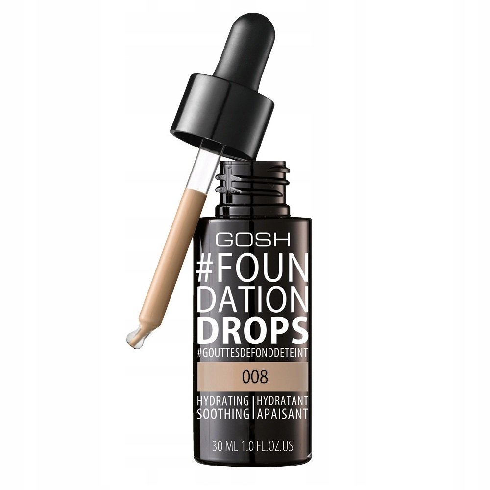 Gosh, Foundation Drops, nawilżająco-wygładzający podkład do twarzy 008 Honey, SPF 10, 30 ml