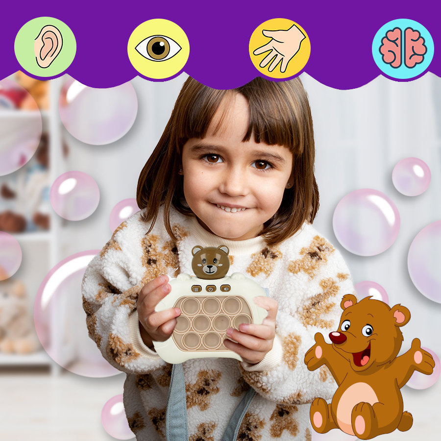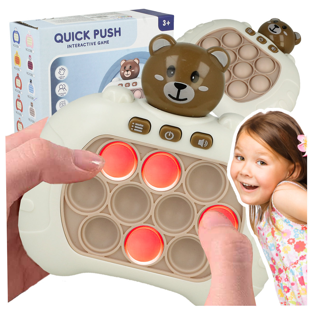 GRA ZRĘCZNOŚCIOWA POP IT ANTYSTRESOWA ELEKTRYCZNA KONSOLA MIŚ ✅ Najważniejsze cechy i zalety:relaksująca i odstresowująca gra dla najmłodszychpolega na ...