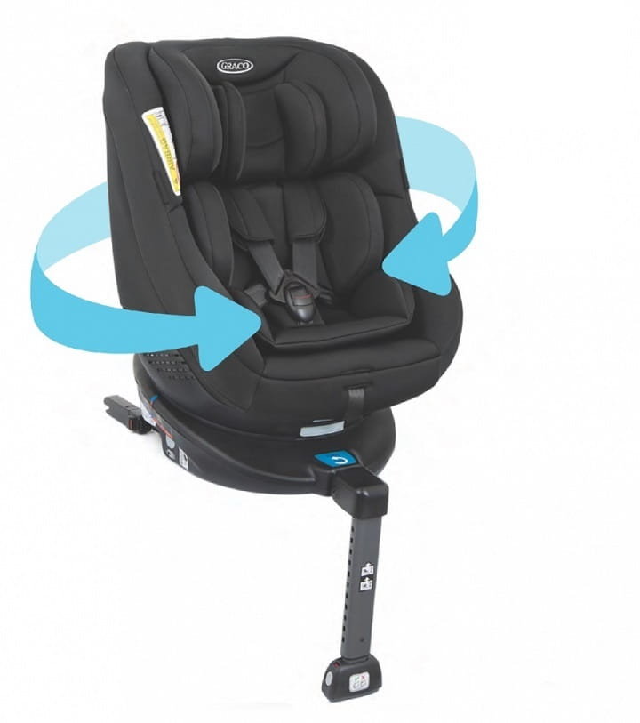 Siedzisko obraca się bez trudu wokół własnej osi w 360 ° za pomocą tylko jednego ruchu ręką. Umożliwia to łatwy dostęp do dziecka i jego umieszczenie w foteliku.