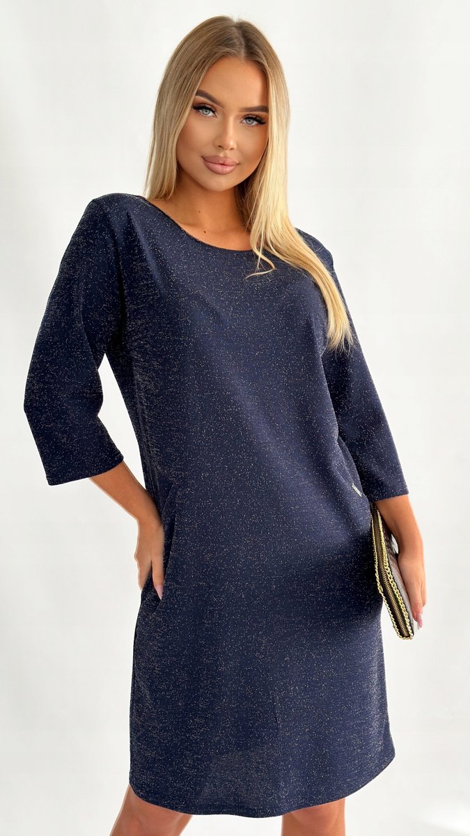 GRANATOWA KLASYCZNA PROSTA ŚWIECĄCA SUKIENKA ROZMIAR 2XL