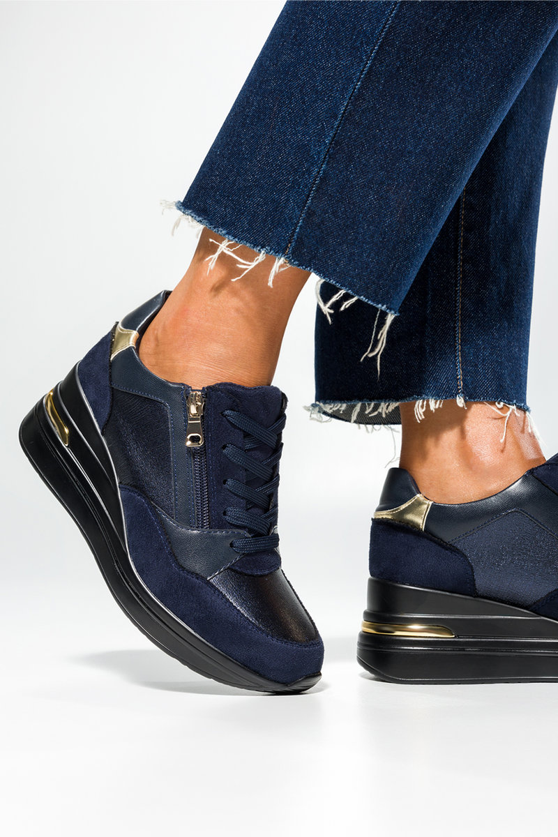 Właśnie zrecenzowałem Granatowe półbuty damskie na ozdobnym koturnie sznurowane złote dodatki Casu JW24X17-N-39