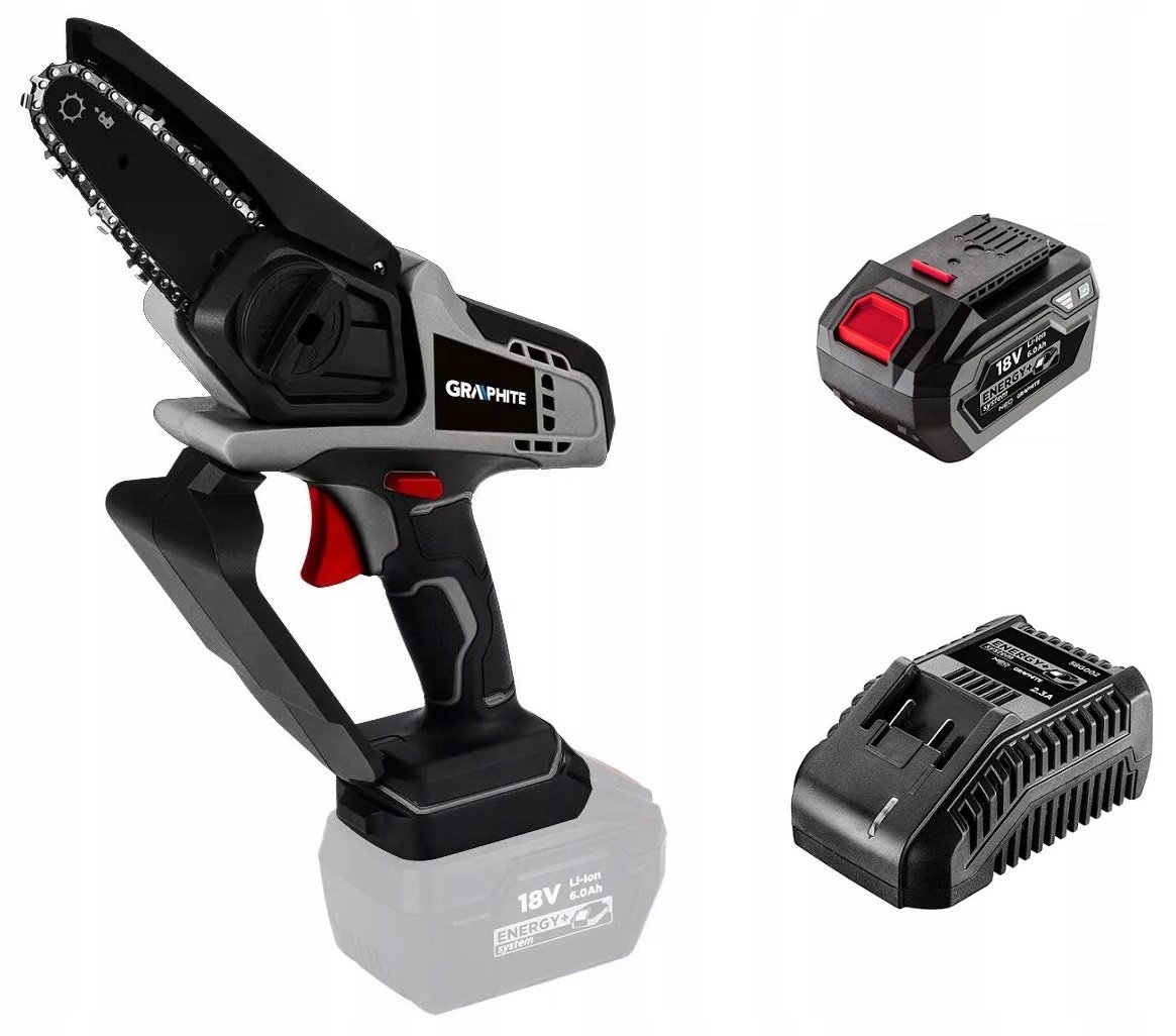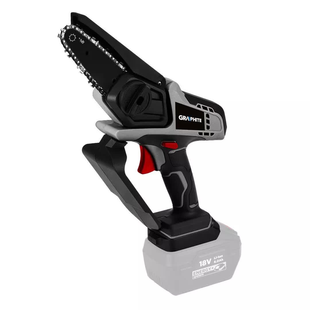 GRAPHITE Mini Piła Łańcuchowa akumulatorowa ENERGY+ 18V LI-LON, 58GE116 Łańcuchowa mini pilarka akumulatorowa od marki GRAPHITE. Narzędzie kompatybilne z bateriami litowo-jonowymi 18 V systemu ...