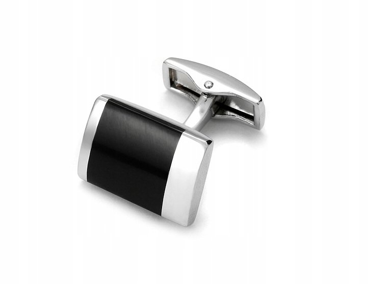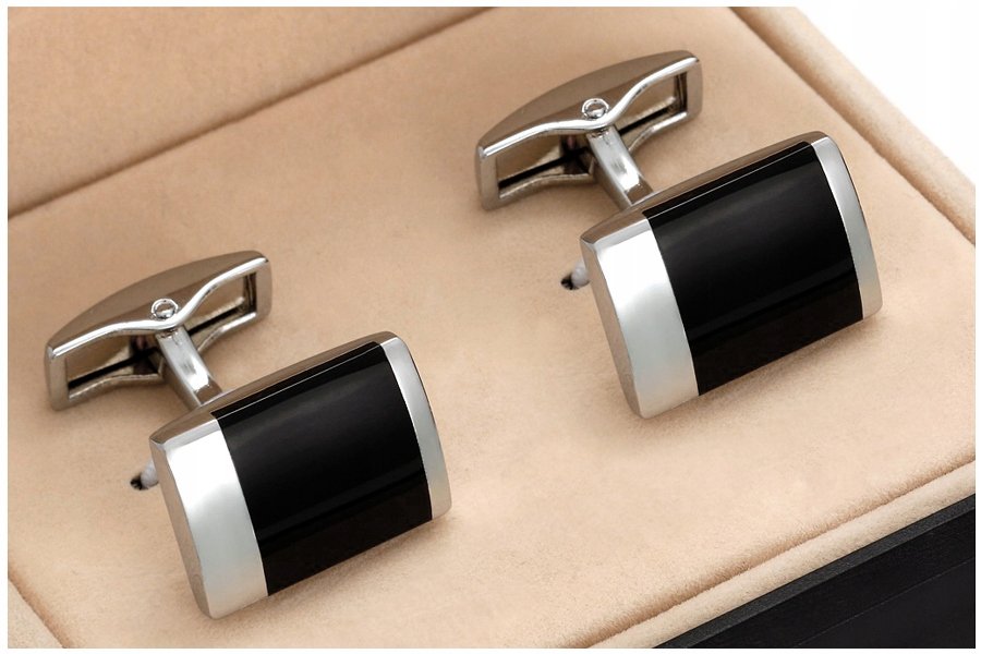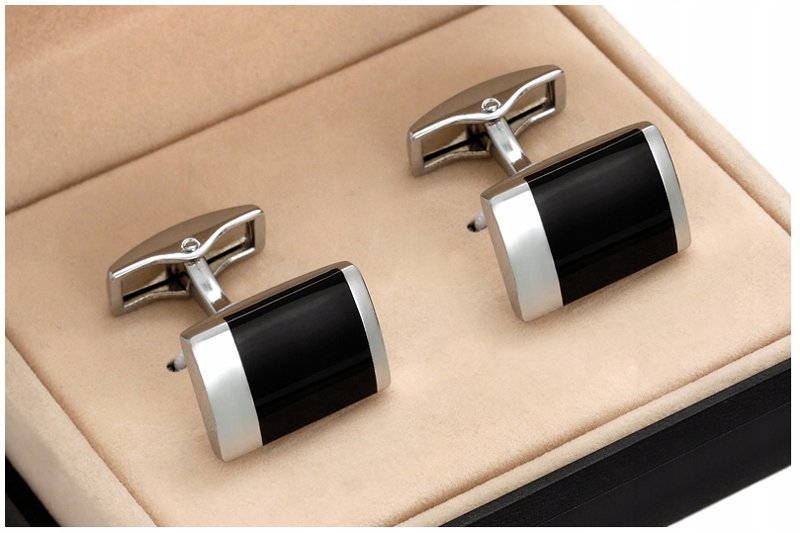 Wysokiej jakości spinki do mankietów zapakowane w pudełko prezentowe.