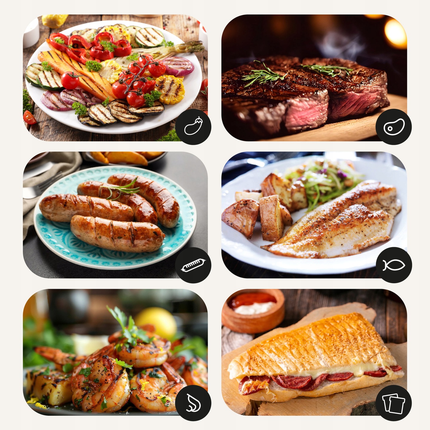 Grill Chef Base Control nagrzewa się błyskawicznie dzięki wysokiej mocy 2000 W, która umożliwia równomierne rozprowadzanie ciepła. To pozwala uzyskać doskonałe efekty – soczyste steki, chrupiące warzywa i aromatyczne tosty smakujące jak prosto z tradycyjnego grilla.