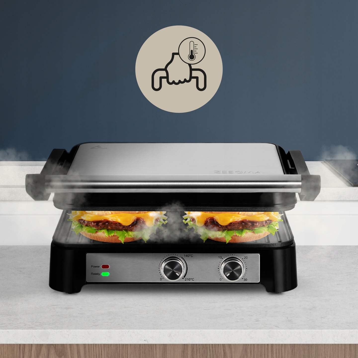 Uchwyt urządzenia nie nagrzewa się nawet podczas intensywnego użytkowania. Dzięki temu możesz swobodnie otwierać i zamykać urządzenie bez obawy o kontakt z gorącymi elementami grilla. W ten sposób bez problemu wyjmiesz jedzenie zaraz po zakończeniu grillowania.