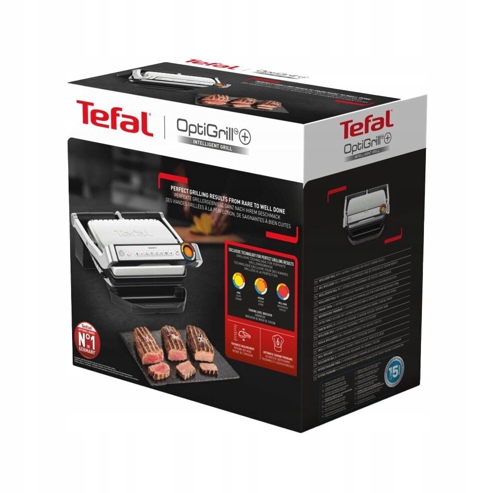 Nowoczesny kontaktowy grill elektryczny klasy średniej Tefal OptiGrill+ GC717D przeznaczony jest do wygodnego, zautomatyzowanego gotowania różnorodnych dań z mięsa, ryb, warzyw, a także popularnych panini, burgerów i kanapek. Na panelu sterowania dostępnych jest 6 programów automatycznych oraz dodatkowa funkcja rozmrażania/podgrzewania. Dzięki czujnikowi urządzenie samodzielnie określa grubość produktów i dostosowuje parametry do równomiernego i wystarczającego wypieczenia.